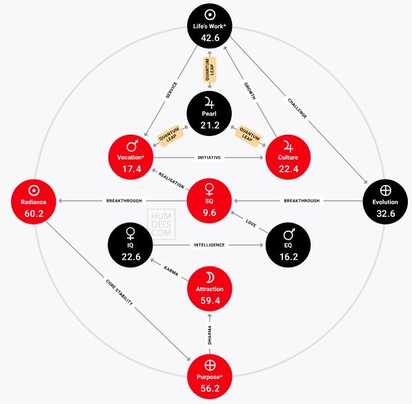 Cette séquence t’invite à contempler tes quatre Dons Primordiaux, ce sont les énergies qui influencent le plus fortement ta vie depuis ta naissance. Elle correspond aussi aux quatre portes de la Croix d’Incarnation dans le Design Humain. Elle est composée des sphères suivantes: